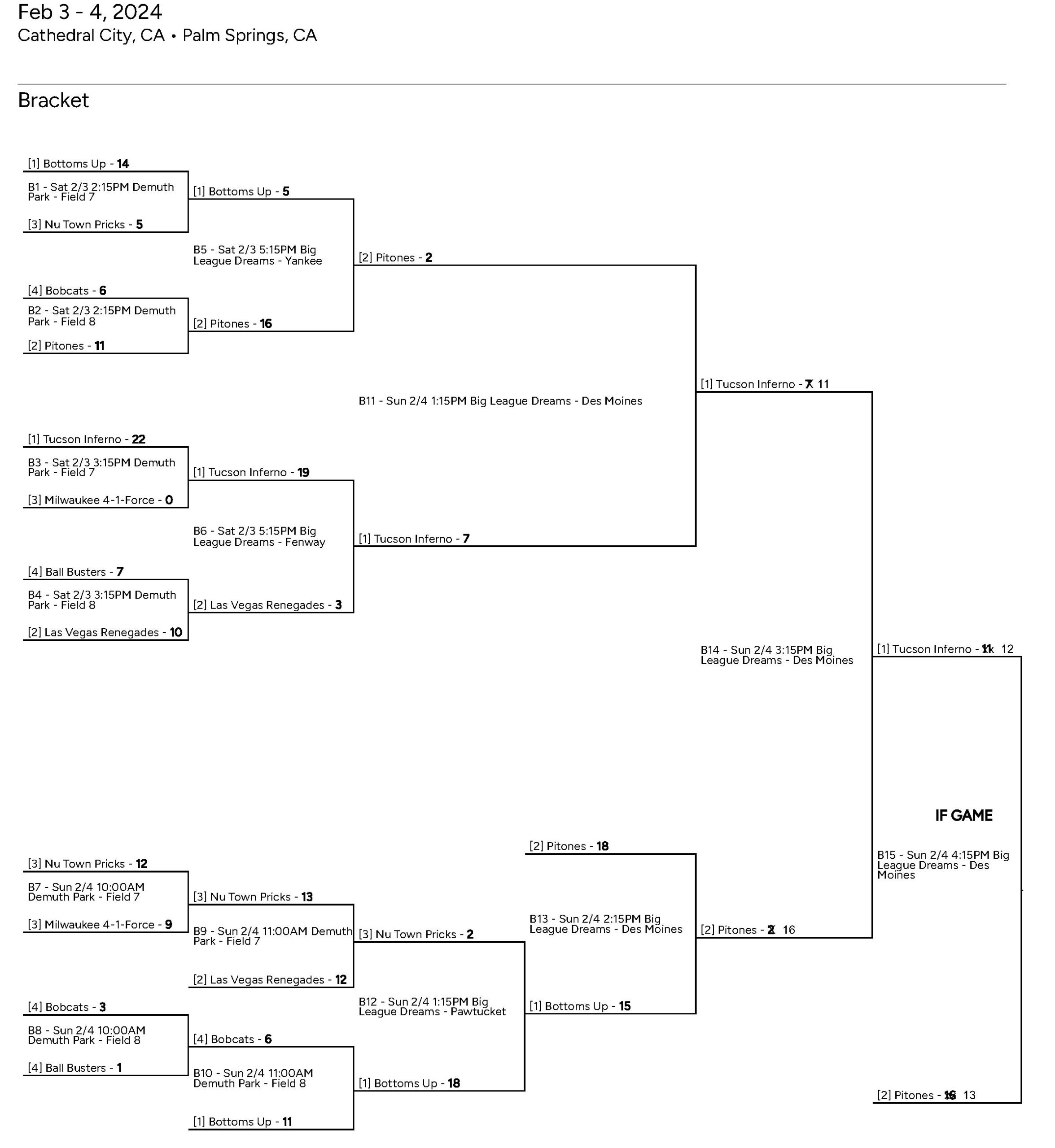 What an exciting weekend (Feb 3 and Feb 4) in Palm Springs! And not just the show tunes at Quadz! TIPS was undefeated in the winner’s bracket of the Open E division going into the championship game, an amazing position to be in! Alas, TIPS couldn’t hold out against the tough offense and defense of the Los Angeles Pitones and lost the “if” game in the 7th inning by 1 run. We are so happy with our showing and the great attitudes, rocking plays, and awesome hits.
